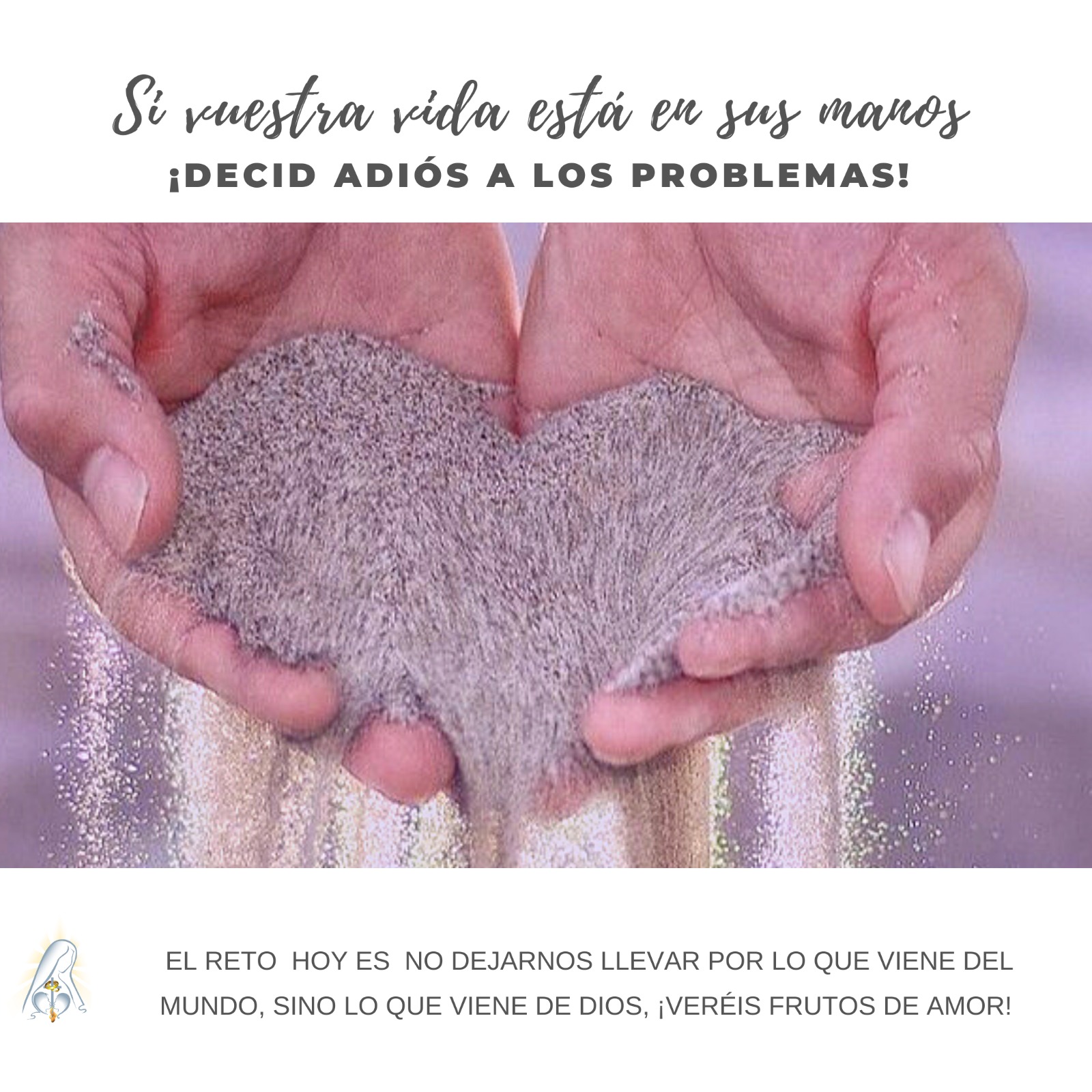 La solución está en dejar que Dios sea Dios. Dejar que el Espíritu Santo gobierne mi vida. Mis problemas de hoy no son tan importantes. Pasarán… Esto sólo lo podré ver si no tengo el corazón embotado con las cosas de la vida. Para ello, tengo que renunciar a todo lo que hace que lo tenga embotado. Así descubriré que lo único importante es el amor, lo único que permanecerá para siempre y lo único que trascenderá a nuestra vida. Sobre el amor se construye nuestra unión y por tanto nuestra salvación, con nuestro amor damos fruto, y hablando de construir amor, hay uno que se llama así pero con mayúsculas, porque Él es Amor.