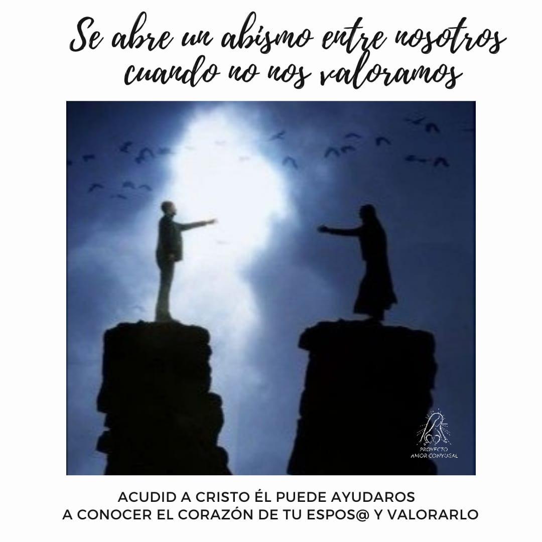 Lo contrario del desprecio es el aprecio. Apreciar el valor de las personas es el antídoto contra los “abismos”. Cuando valoro a mi esposo como hijo de Dios, según el amor que Dios le tiene, le tengo en cuenta, estoy pendiente, me mueve a cuidarle y a procurarle un bien. Si aprendo a valorar, aprendo a querer.