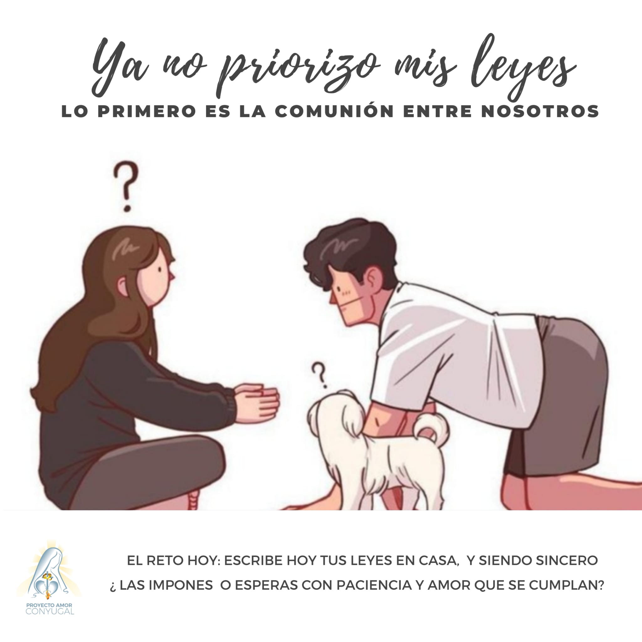 Matrimonio Tutor: Pues esta noche, cuando reces con tu esposa, hazte estas preguntas y respóndete a ti mismo. ¿Querrá Dios que me enfade con mi esposa en esas situaciones? ¿Llevo a mi esposa más hacia Dios cuando actúo de esa manera? ¿Qué es más importante, mi ley de la puntualidad o mi comunión con mi esposa? Después, con un corazón contrito y humillado, le pides perdón a Dios y a ella.