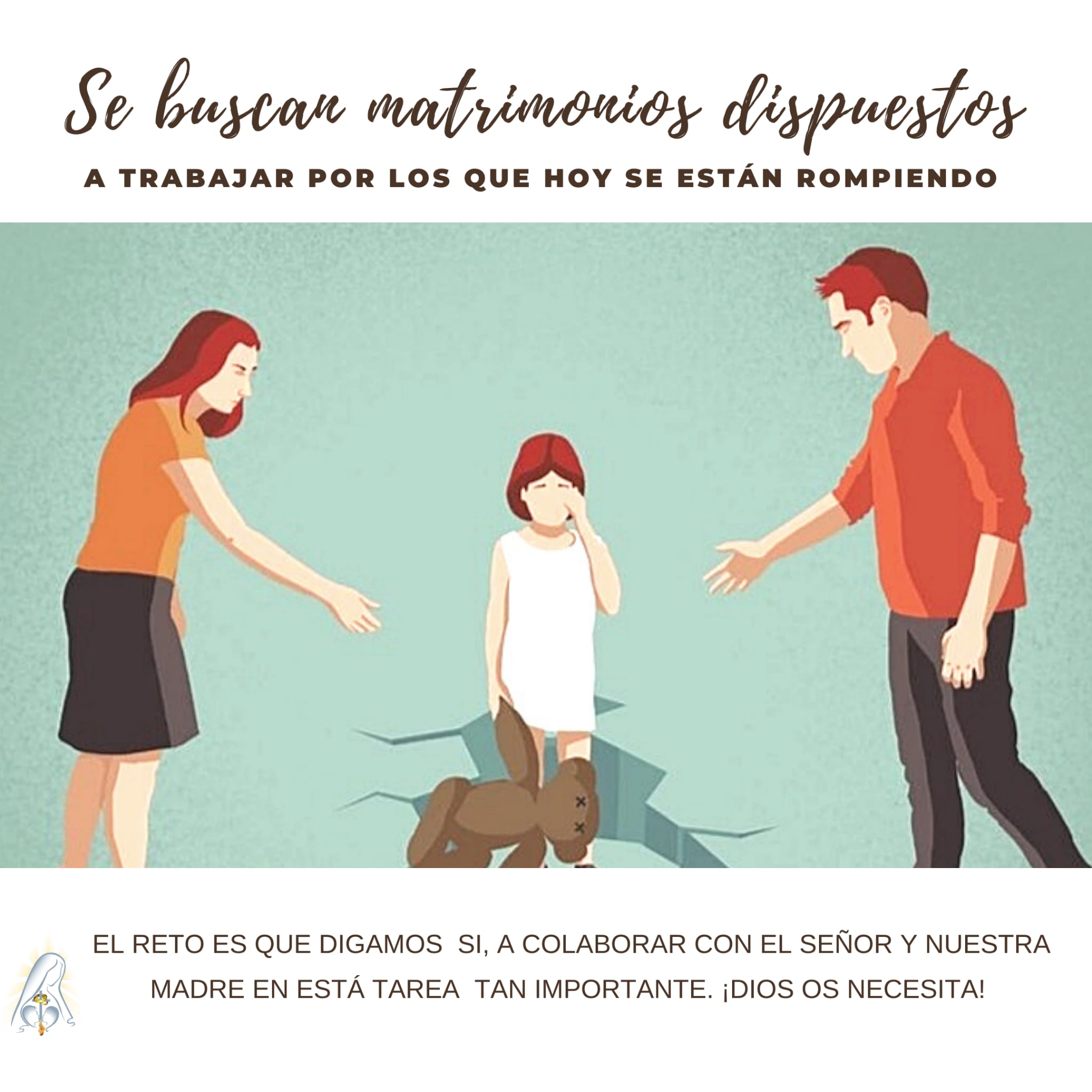 Nuestra Madre está empujando con mucha fuerza para salvar a muchos matrimonios. Necesita algún matrimonio santo para cambiar el mundo, necesita muchas manos para llegar a muchos. Hay matrimonios sufriendo hoy. Hay familias a punto de destruirse hoy, sí, hoy. Hay otras ya destruidas, pero que pueden salvarse si tenemos Esperanza y nos ponemos al servicio de María, hoy. “Rogad, pues, al dueño de la mies” nos dice el Señor. Hacen falta manos, voces, testigos… y oración. Mucha oración.