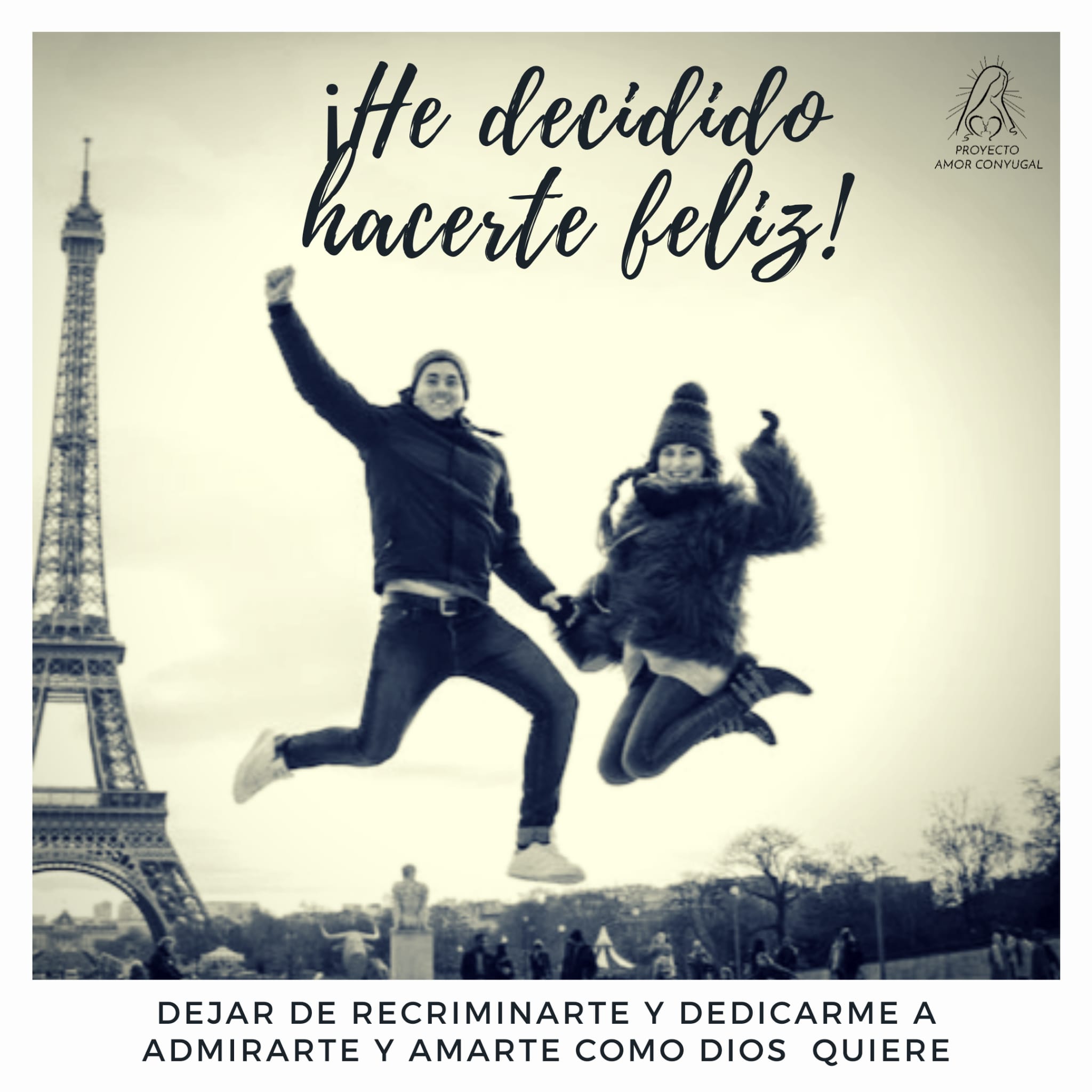 Así que he decidido cambiar de táctica. Voy a dejar de exigirle a mi esposo que sea más perfecto de lo que es, y en su lugar, voy a hacerle feliz. Voy a hacer que se sienta acogido por mí, que descanse en mí cuando llegue cansado, que tenga confianza en mí y me cuente sus cosas sin miedo a una reprimenda. Voy a ser su amigo, su confidente, quien le mima, quien le hace sentirse valorado, quien más misericordia tiene con él/ella. Creo que eso es lo que Dios me pide que le dé. En definitiva, voy a ser quien más le ame. Quizás así, comportándome como un verdadero esposo, y con la autoridad que Dios me ha dado, le ayudaré a sacar lo mejor de él/ella.