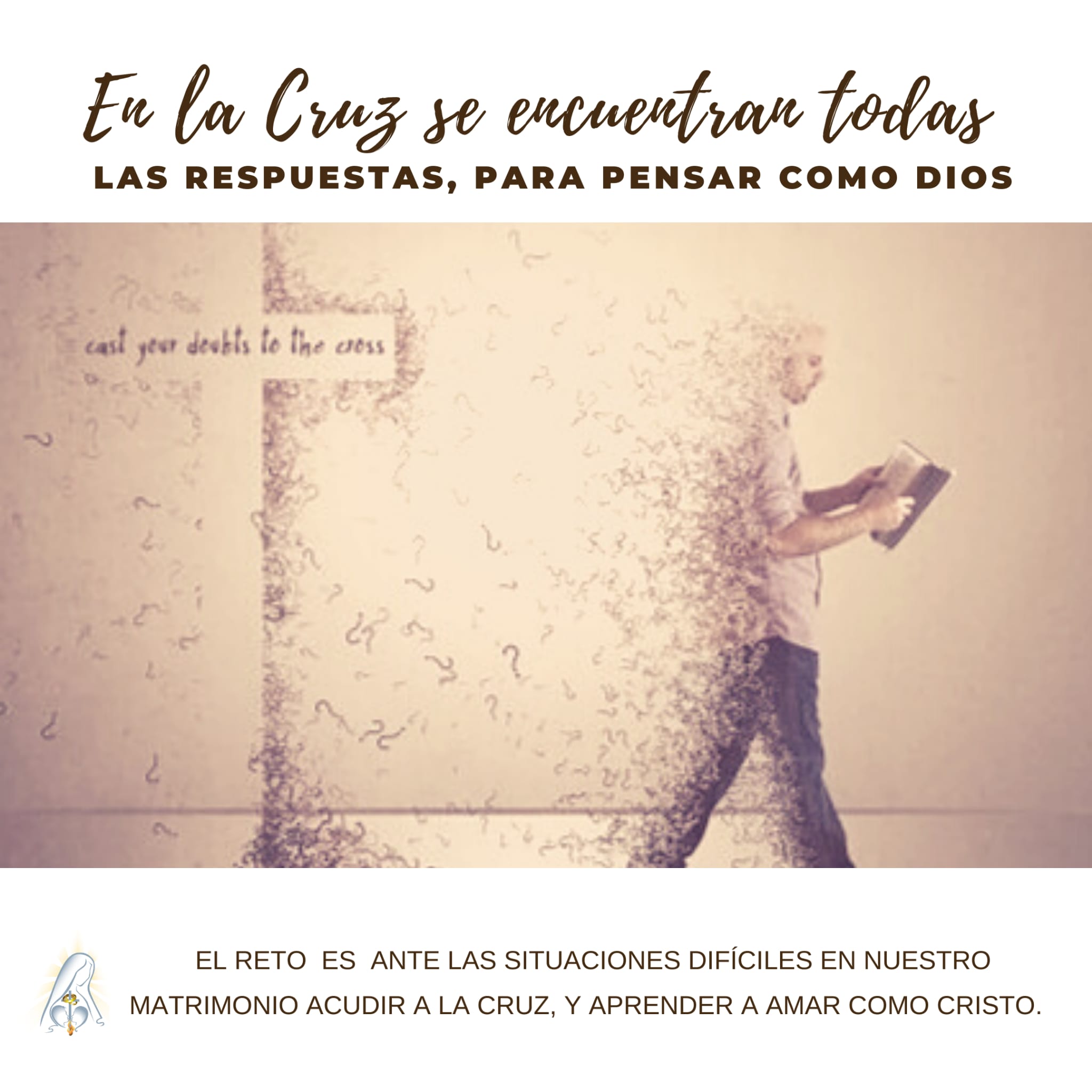 Vivimos entre los esposos situaciones similares (a nuestro nivel), a las que vivió Jesús en la Pasión: A veces el Getsemaní de tener que tomar una decisión dura por ser fieles a Dios, a veces somos juzgados injustamente por nuestro esposo, o cargar con la cruz de sus pecados, o las caídas y tener que volver a levantarnos, o los desprecios y las risas burlonas de la coronación de espinas… A cualquiera que le contásemos estas situaciones que vivimos, nos podría decir: “No lo permitas. Sepárate.” Y nuestra respuesta debería ser la de Jesús: «¡Ponte detrás de mí, Satanás! ¡Tú piensas como los hombres, no como Dios!». Porque todas esas situaciones de cruz, unidas al sacrificio de Cristo, son signo de fidelidad al Padre a través de nuestra promesa de unión indisoluble, son medios de salvación para otros y fuentes de vida para nuestro matrimonio, nuestros hijos y nuestro entorno.