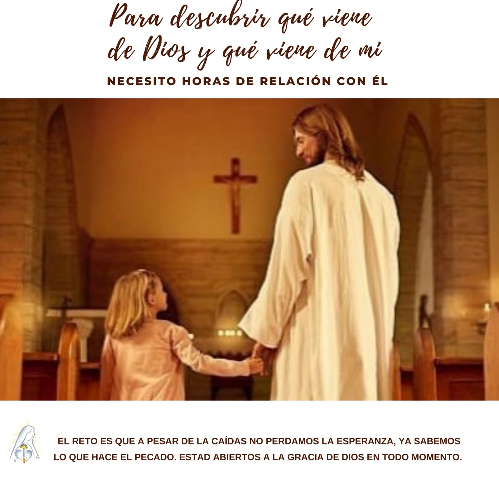 El Padre: Pues vivid esas caídas con humildad. Quiero que aprendáis a ser conscientes de cómo afecta vuestro pecado en vosotros y en vuestra misión de esposos, para que sintáis verdadera repugnancia por él. Aprended, aprended, tened la esperanza puesta en mi misericordia, para haceros humildes y estar listos para cuando os dé la gracia de redimiros de estas circunstancias y sepáis que no ha sido obra vuestra, sino mía, por amor a vosotros. Por amor os lo di, por amor os redimí.