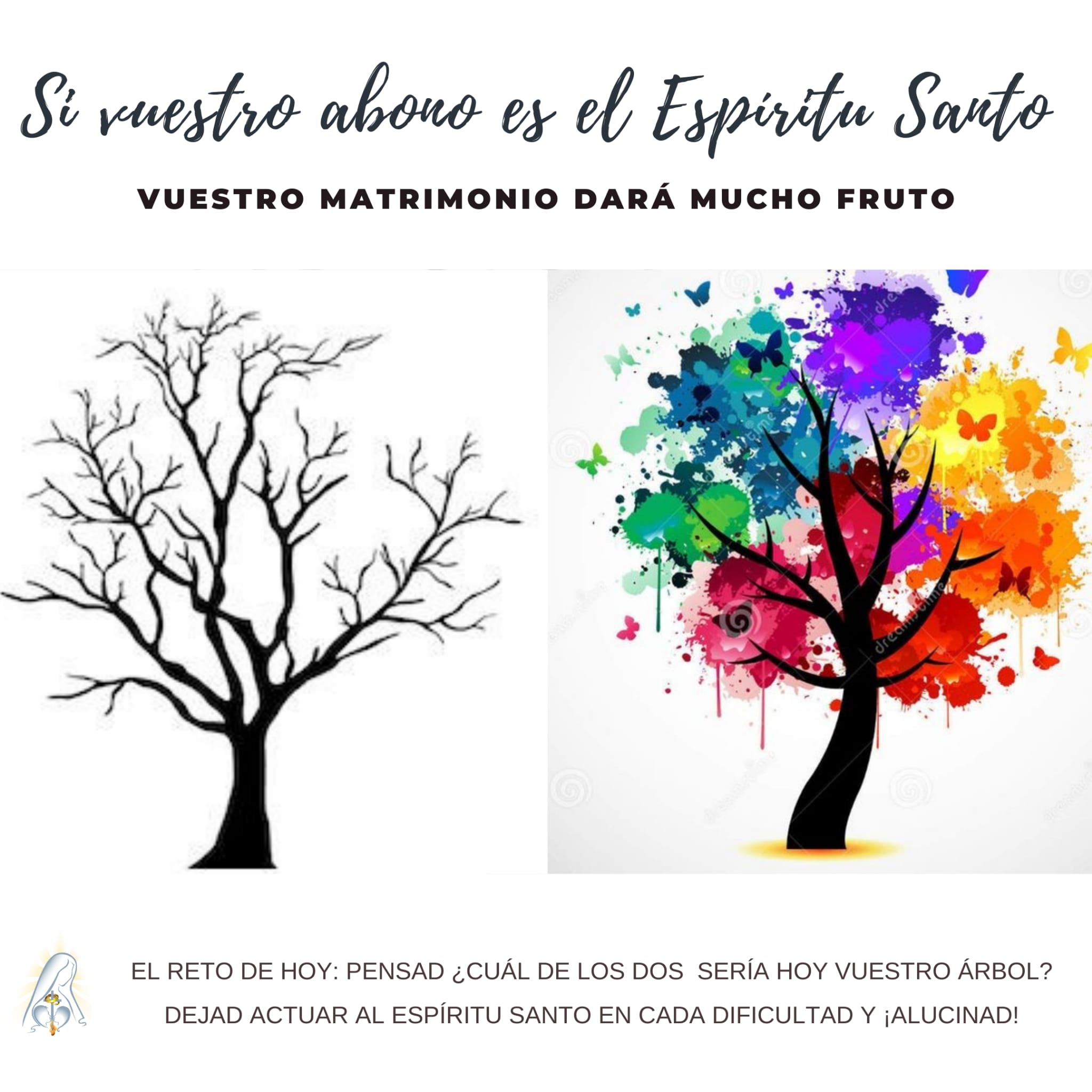Si lo que fluye por mis venas el es Espíritu Santo, entonces estarán presentes Sus frutos entre nosotros: Amor, alegría, paz, paciencia, bondad… dominio de mí… Y qué alimenta mi árbol: El estiércol, todas esas dificultades aparentemente malolientes, pero que nos hacen más humildes, más pacientes, más sinceros… esas que tanto nos cuestan por la dureza de nuestro corazón y que favorecen que entre y actúe el Espíritu en nuestra alma.