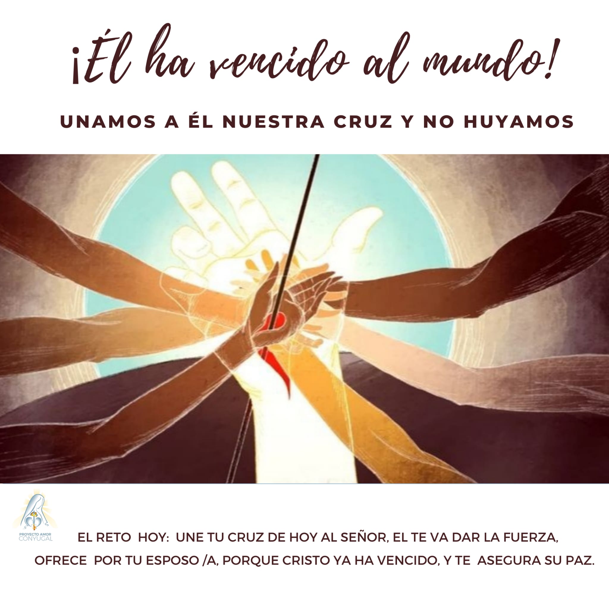 Y Él nos anuncia lo que les va a pasar a muchos esposos cuando llegue la cruz: Que se van a dispersar y le dejarán solo. El esposo, por un lado, la esposa por el otro, y Cristo, que es el tercero que se comprometió a estar todos los días de su vida, se queda solo. No vamos a encontrar la paz, si no nos apoyamos en Él, porque aunque haya luchas entre nosotros, Él ha vencido ya todas nuestras batallas.
