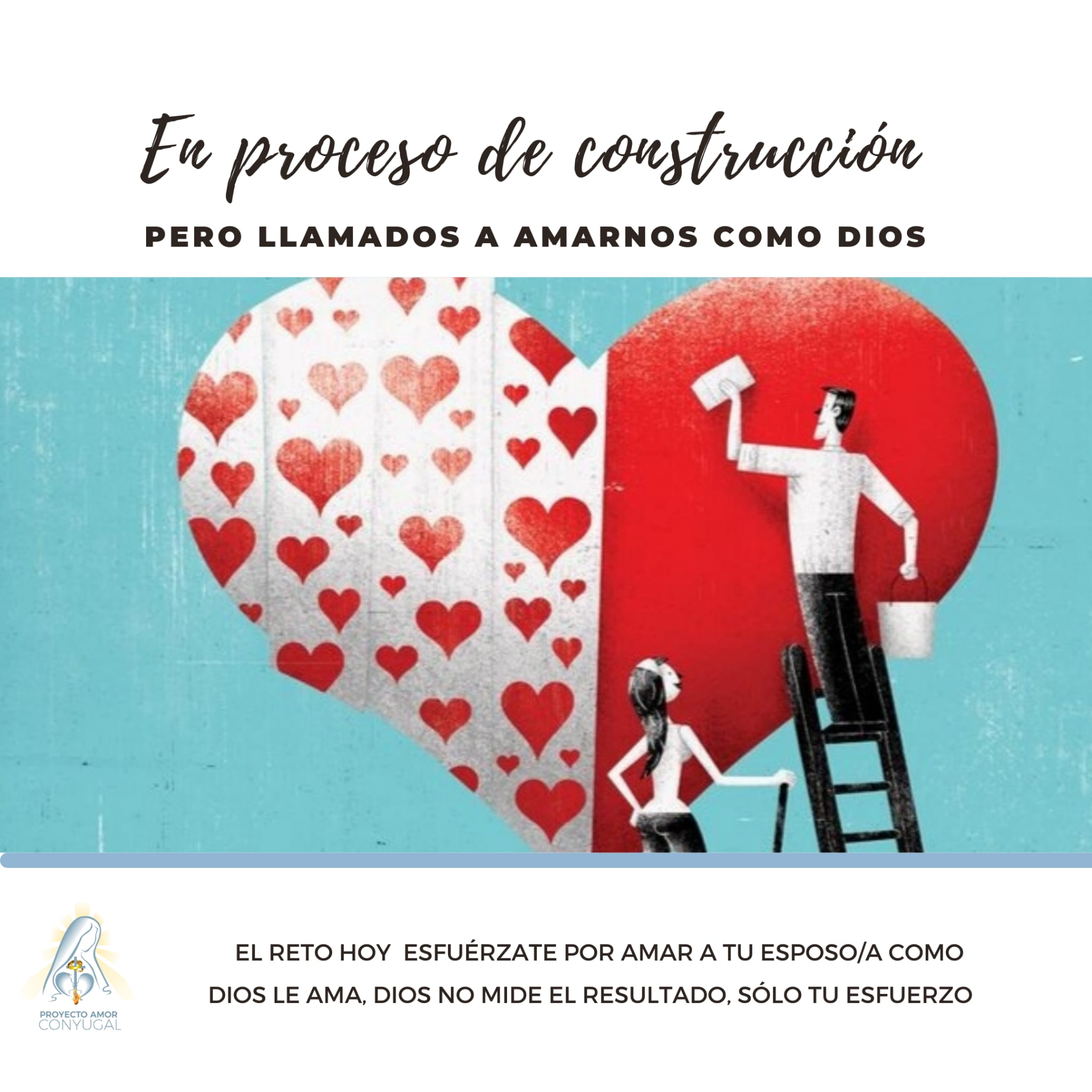 El amor entre el esposo y la esposa refleja el amor de Dios. Hemos sido creados para amarnos como Él, y ese es nuestro mandamiento principal. Sin embargo, nuestro amor es un proyecto. No nos podemos exigir el uno al otro vivir este amor como Dios, sino que tenemos que construirlo juntos. Así que, deberíamos colgar entre nosotros un cartel que pusiese “en construcción”. Y con esa naturalidad, lo iremos viviendo. Hoy avanzará más la obra y mañana menos, pero todos los días pondremos la maquinaria a funcionar. Cualquiera que se acerque a la “obra” verá primero una enorme zanja, después los cimientos, la estructura, luego paredes que se van construyendo ladrillo a ladrillo… En cada fase de nuestra obra, podrán intuir qué es lo que estamos construyendo: Un amor de comunión, que refleja el del mismísimo Dios. Pero… que conste, que al final, es posible verlo terminado. Dios nos ha creado el uno para el otro, para hacernos uno como Él. ¿Cuántos esposos estamos construyendo nuestro matrimonio en serio?