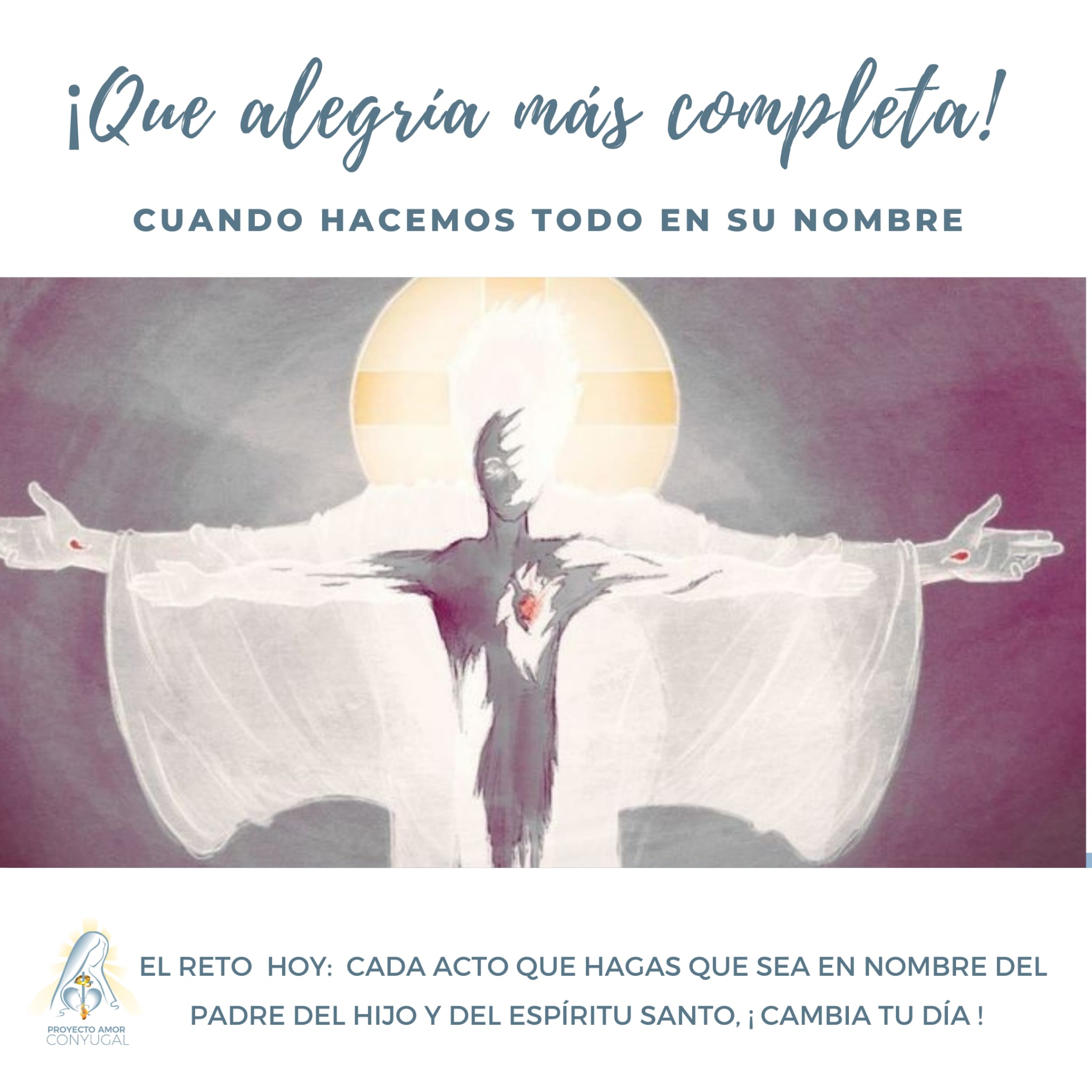 Así que, me he propuesto que cualquier cosa que vaya a empezar, lo haré en el nombre del Padre, del Hijo y del Espíritu Santo, porque esa debe ser mi motivación. Por supuesto, mis oraciones, pero empezar a vivir cada día en Su Nombre, ser esposo en Su Nombre, ser padre/madre en Su nombre, trabajar en Su nombre… y recibiré, como dice Jesús, para que nuestra alegría sea completa. ¿Qué haría Jesús en esta situación? Será la pregunta…