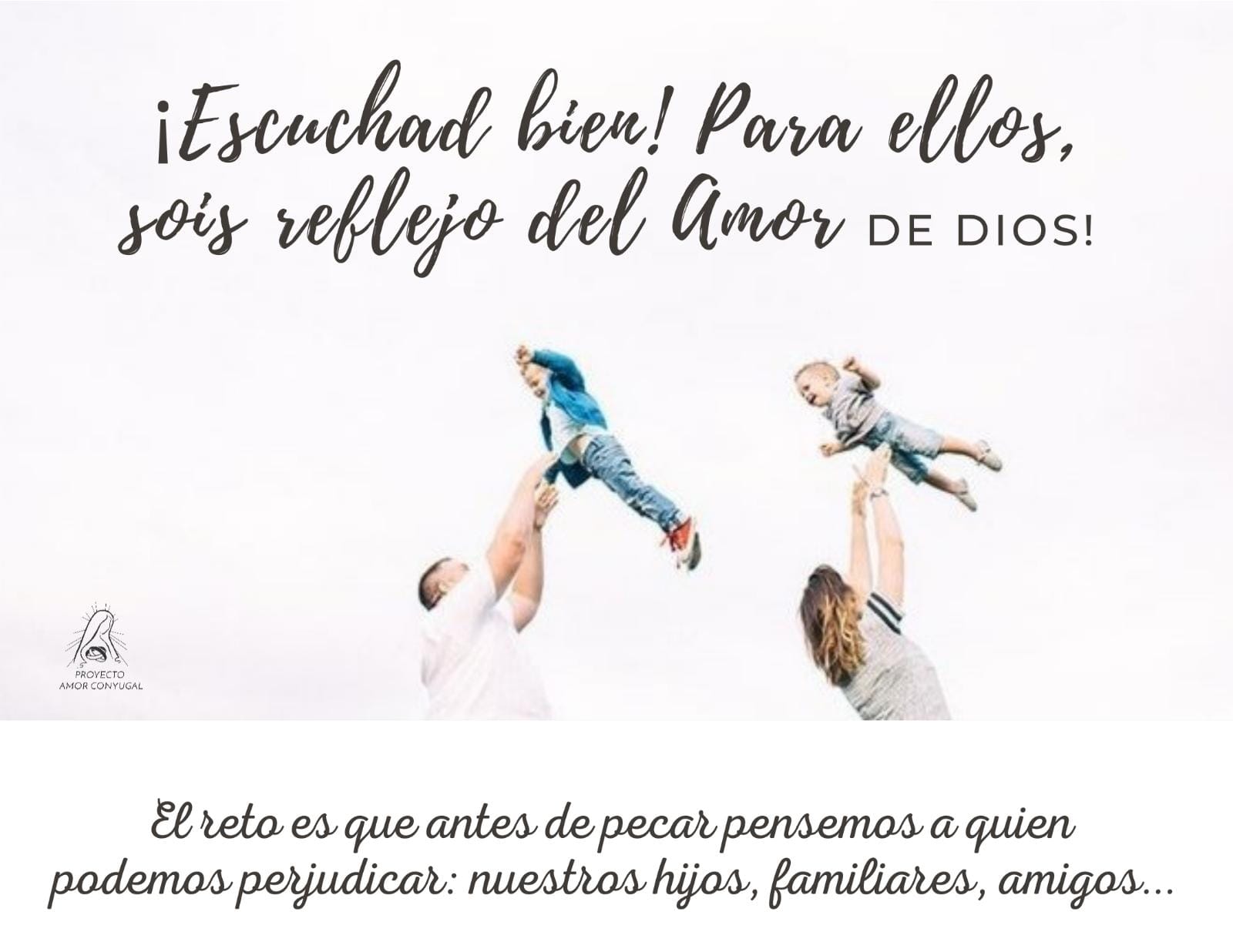 Qué importante es no ser escándalo para los pequeños. El problema para los esposos es que, representamos la imagen de Dios para nuestros hijos. Y por ser cristianos, también estamos rodeados de muchos que desean vernos caer para airear el escándalo de los católicos y desprestigiar la familia de Dios. Estamos en el punto de mira, y es muy importante actuar en el nombre e Cristo, pero sólo lo conseguiremos si somos de Cristo. Él nos ganó con Su Sangre.