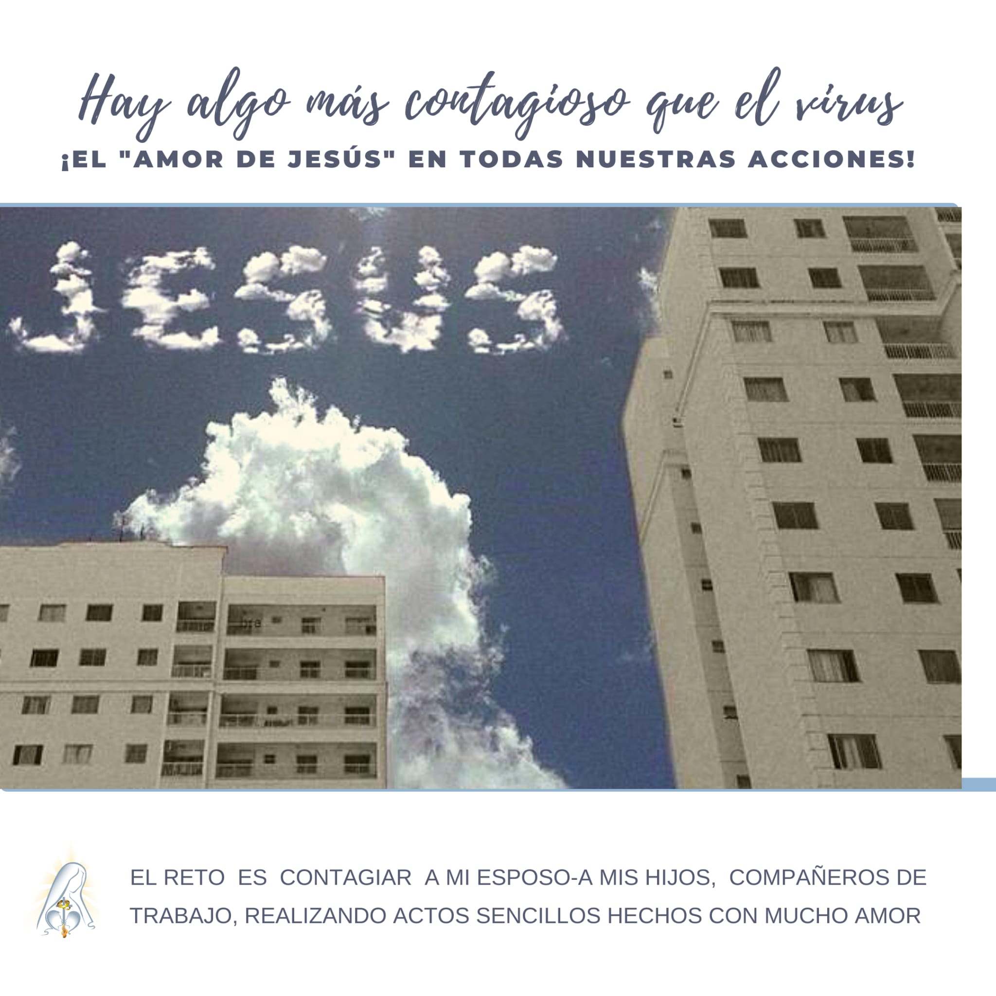 El bien se contagia, el amor de Cristo se contagia: La alegría, la generosidad, el servicio… Tenemos que transmitir el “virus” de Su amor a nuestro esposo para así contagiar al resto de la familia. Esposos, comencemos la “epidemia” del Espíritu de Dios, contagiémoslo en casa para que llegue al cole, al trabajo, al vecindario… Desearás “dar positivo”.