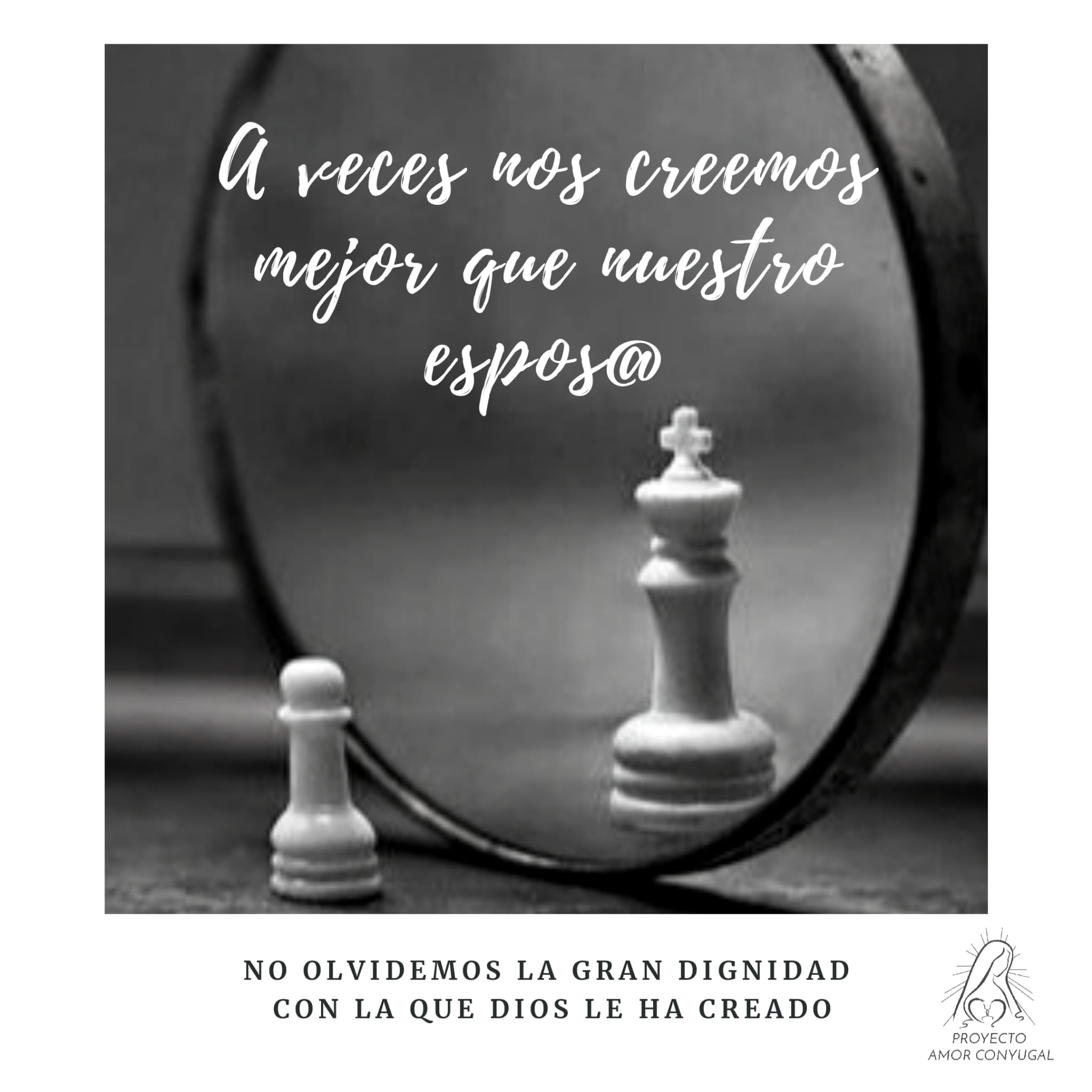 No debo juzgar a las personas por lo que ven mis ojos, puede que Dios les haya asignado una misión grande y, aun viendo signos que les hagan parecer inferiores, estén en realidad muy por encima de mí. Juzgar a alguien como inferior, es hacer violencia contra el cielo. Esto me lo debo aplicar especialmente con mi esposo, que ha sido creado para una misión grande, para ser digno de ser esposo a imagen del Esposo, digno de un amor de comunión a imagen de la Santísima Trinidad, digno de ser redimido por Cristo a precio de Su sagrada Sangre, digno de ser hijo de Dios, heredero de toda su grandeza, su bondad y su poder, y digno de ser templo del Espíritu Santo. Este es el designio de Dios para él/ella. Puede que las apariencias me engañen, pero… ¡Ante quién estoy!