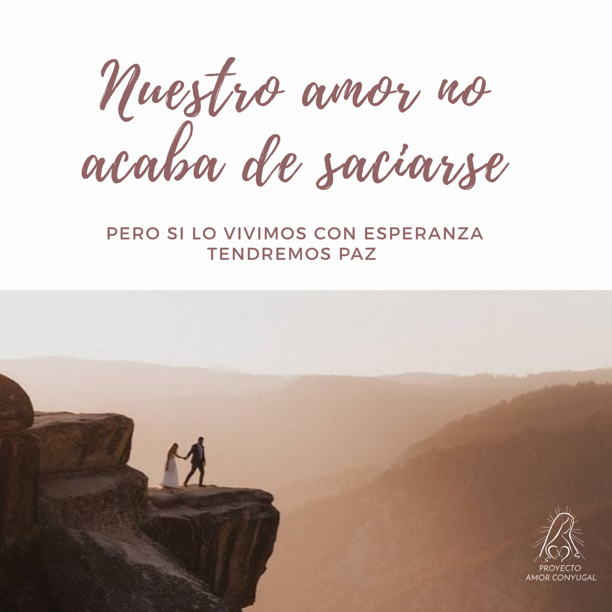 Si no estuviésemos insatisfechos, no nos moveríamos. En esta vida viviremos la insatisfacción permanente hasta el último de nuestros días. Esta insatisfacción de la que hablamos, puede arrastrarme a la desesperación, porque no acabo de encontrar eso que busco, porque no se acaban de satisfacer mis deseos. Nuestro matrimonio se encamina hacia una permanente búsqueda de la perfección, del conocimiento mutuo, de ese amor que no acaba de saciarse. La pieza que falta para dar estabilidad, equilibrio a esa permanente insatisfacción se llama Esperanza. En el Cantar de los Cantares se refleja muy bien esa hermosa búsqueda entre el amante y el amado que no cesa, pero que siempre espera alcanzar el culmen. La clave de Simeón fue esa, la Esperanza que surge de la fe y que lleva le lleva a la paz.