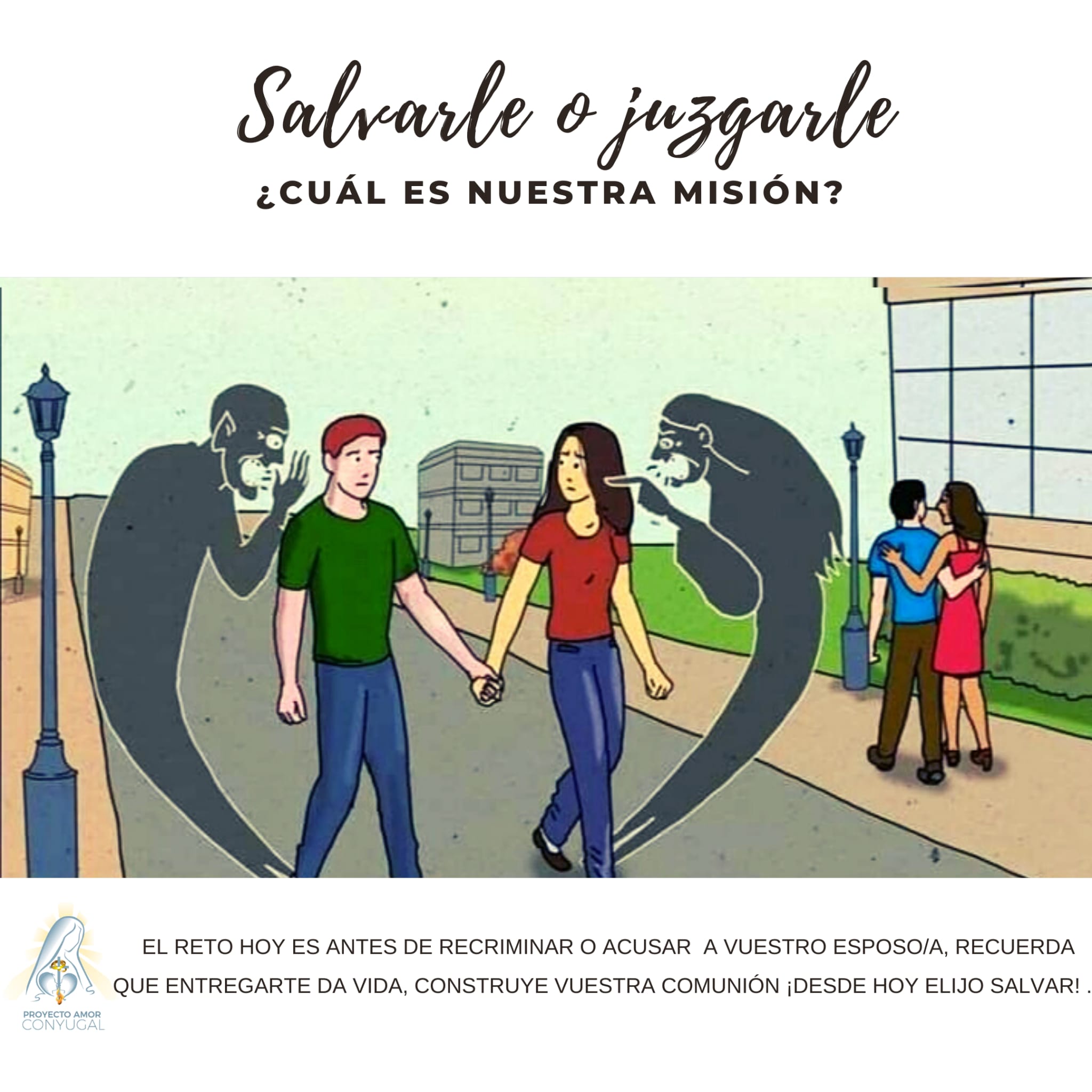 Si Cristo no ha venido a juzgar sino a salvar yo ¿qué plan tengo con mi esposo? El verdadero culpable de todo es el maligno y nos utiliza, así que, no le entreguemos la victoria en bandeja. Estamos aquí para ayudar a salvarnos, esa es nuestra misión.