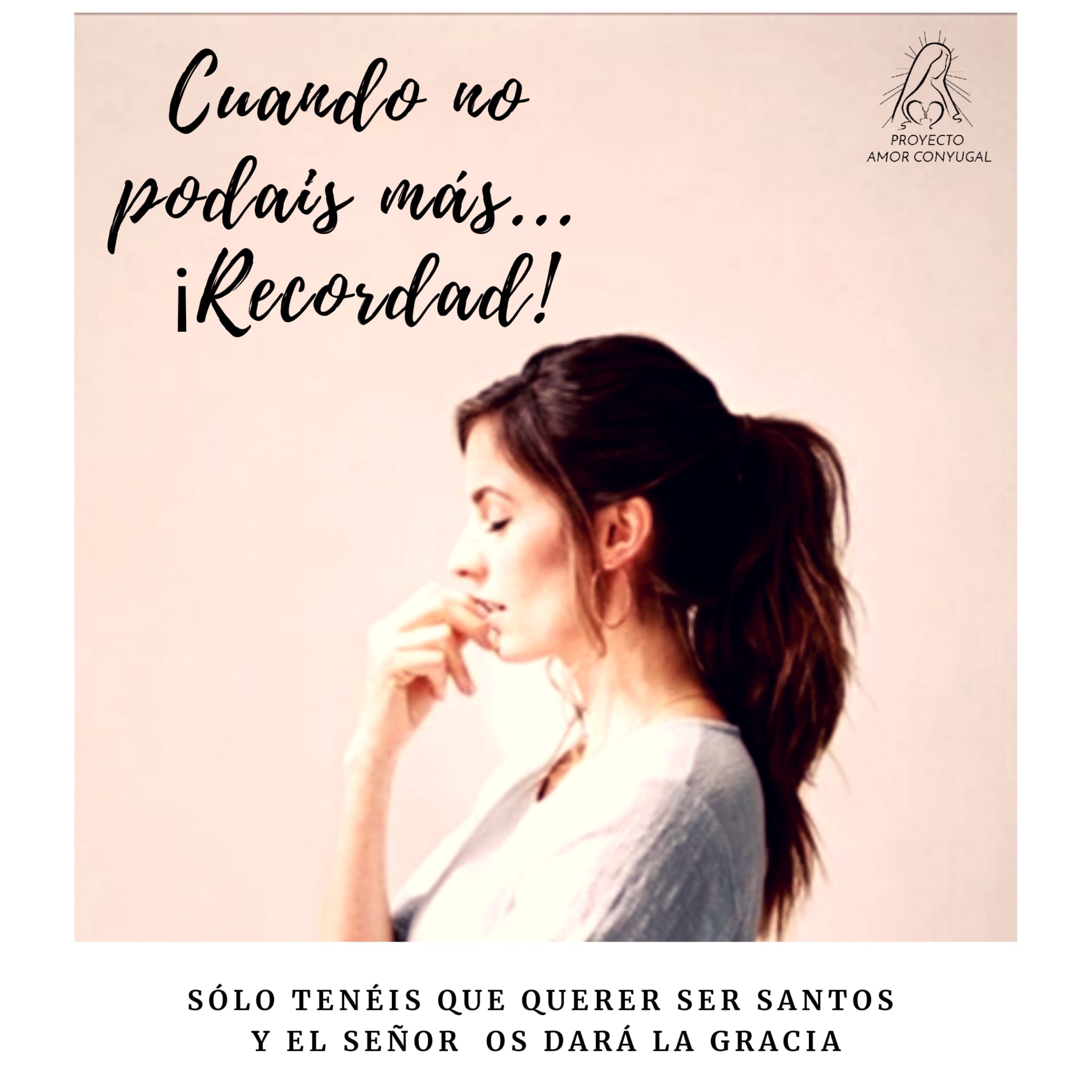 Una oración que no nos cambia, no es oración. La diferencia entre la actitud de los dos hijos de la parábola, es que uno de ellos recapacita y después cambia. La hermana de Santo Tomás le preguntó una vez qué debía hacer para ser santa. Él le contestó sencillamente: Hay que querer. Esposos, mirémonos y digámonos mutuamente “Quiero ser santo contigo, voy a ser santo con la ayuda de Dios”. A esa es a la viña que nos envía a trabajar hoy, a nuestra santificación en nuestra unión. Humildad no es sólo saberse miserable. Humildad es saberse nada y creer que Dios me puede y me quiere hacer santo.