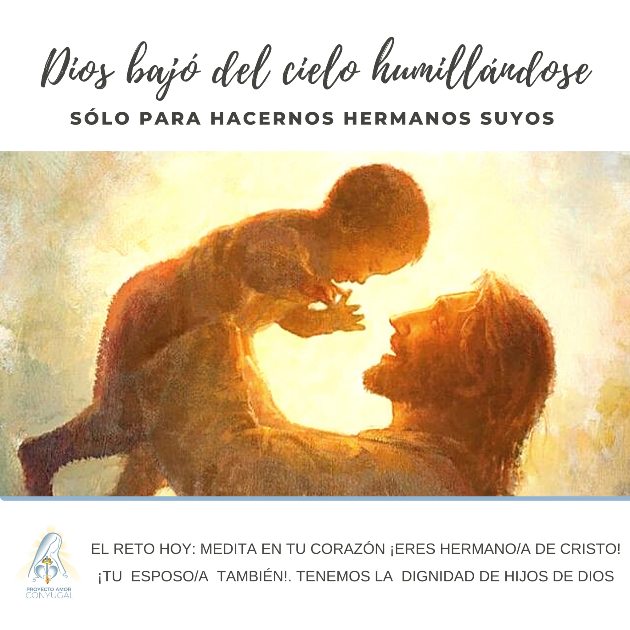 Jesús nos llama sus hermanos, Dios es su padre y el nuestro. Todos somos por tanto hijos de Dios. Mi esposa/o es hija/o de Dios ,hermano/a de Cristo que El me ha entregado en matrimonio. De manera que tiene una dignidad y un valor ,que no sólo debo respetar sino amar. Madre nuestra ayúdanos a respetarnos y amarnos como es la voluntad de Dios.