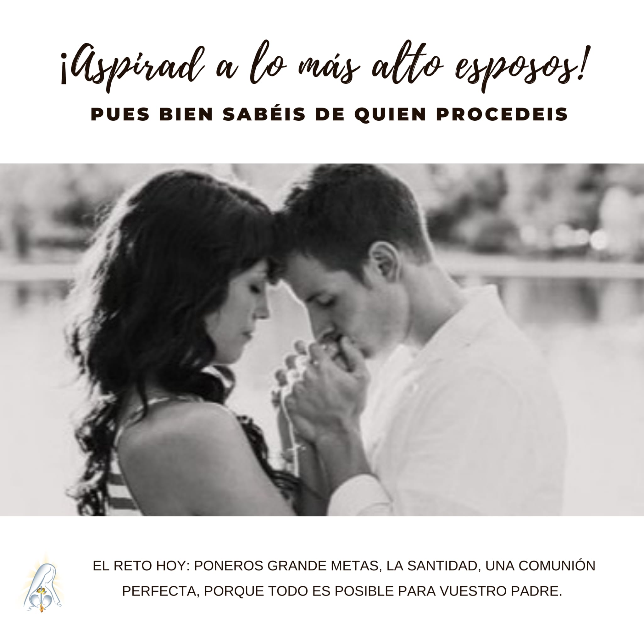 Paco: Exacto. Por eso, nuestro objetivo debe ser la Caridad Conyugal, la comunión y en definitiva, la santidad, porque sé de dónde procedo y que el que me envió es Dios Todopoderoso, todo Amor.
