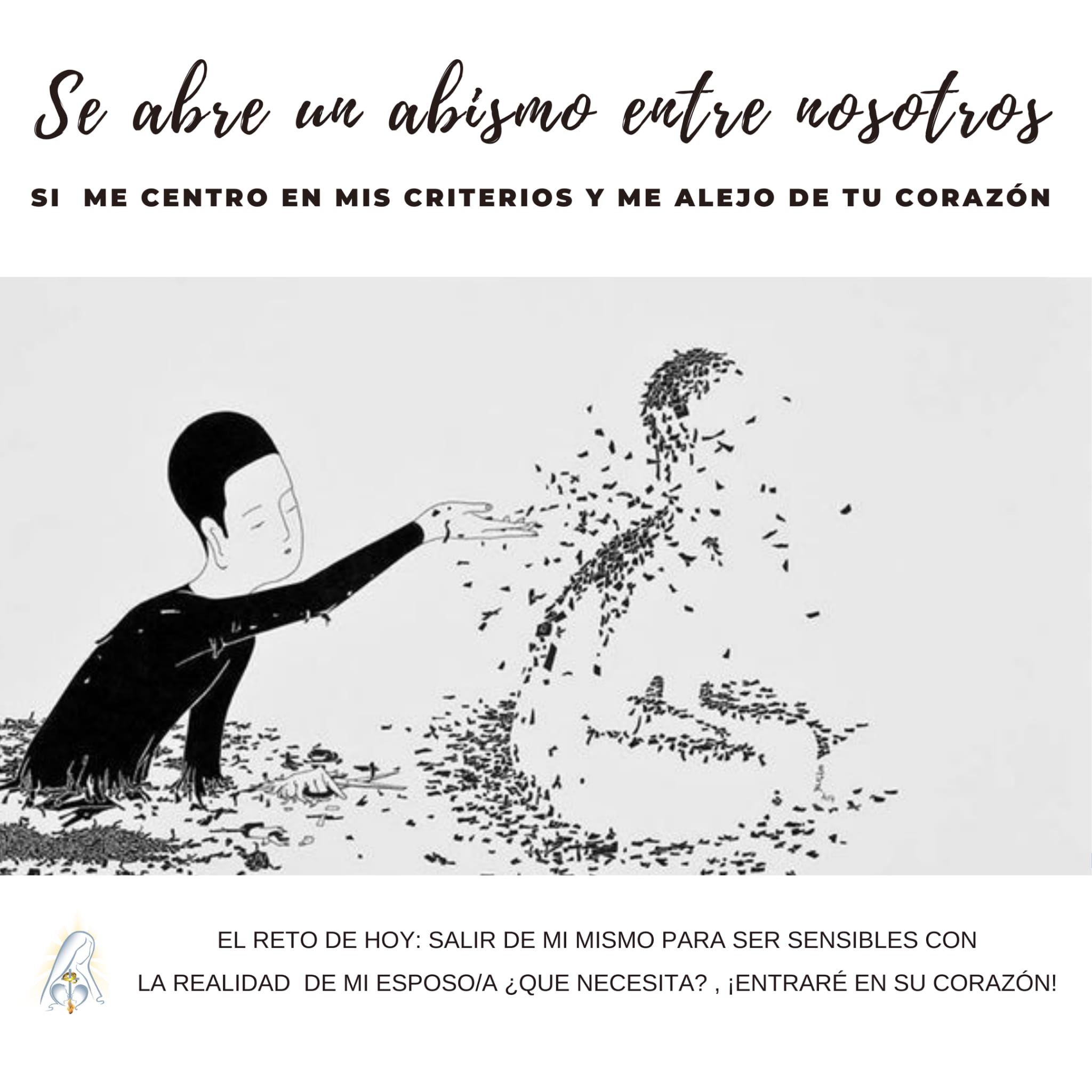 Juan Carlos: Normalmente miro el tema del pecado como algo a evitar con esfuerzo, me veo conteniéndome para no pecar. Pero esto no es suficiente. Tengo que ser capaz de descubrir la grandeza y la belleza de todo lo que Dios me ha dado. En especial, quiero centrarme en lo que me ha dado contigo. Te estoy mirando de una manera nueva: Te miro como hija de Dios. Una maravilla de la creación, de un valor nunca lo bastante apreciado. Sólo tú vales más que todo el universo con todas sus galaxias, estrellas, planetas… más que todos los metales o piedras preciosas, más que todas las especies de animales incluidas las que están en extinción… Y vales tanto, no por lo que haces, no por tus capacidades que podrías perderlas en cualquier momento, sino porque Dios te ha amado por ti misma. Tu valor es incalculable, tanto que Cristo se entregaría sólo por ti. En toda mi vida, no seré capaz de alcanzar a ver toda tu grandeza y tu valor por mucho que purifique mi mirada y mi corazón.