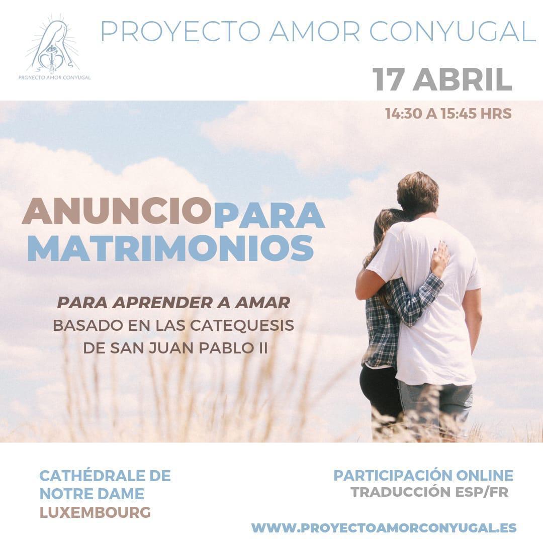 Podréis descubrirlo en el Anuncio que organiza Proyecto Amor conyugal: