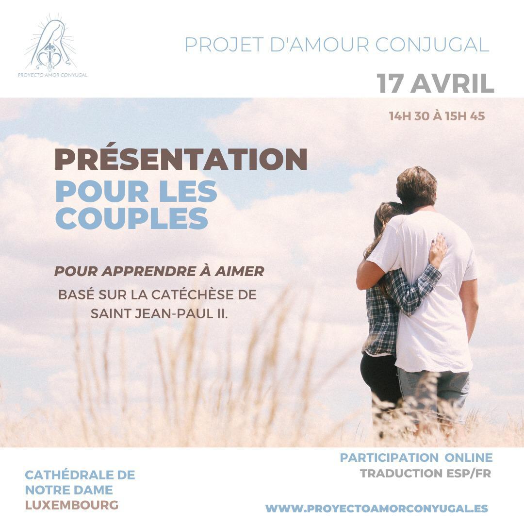 SOUHAITEZ-VOUS partir à la découverte d’un projet qui a déjà changé la vie de milliers de couples? Basé sur la catéchèse de Saint Jean-Paul II, ce projet nous montre une voie où l’on apprend à aimer comme Dieu nous y invite.