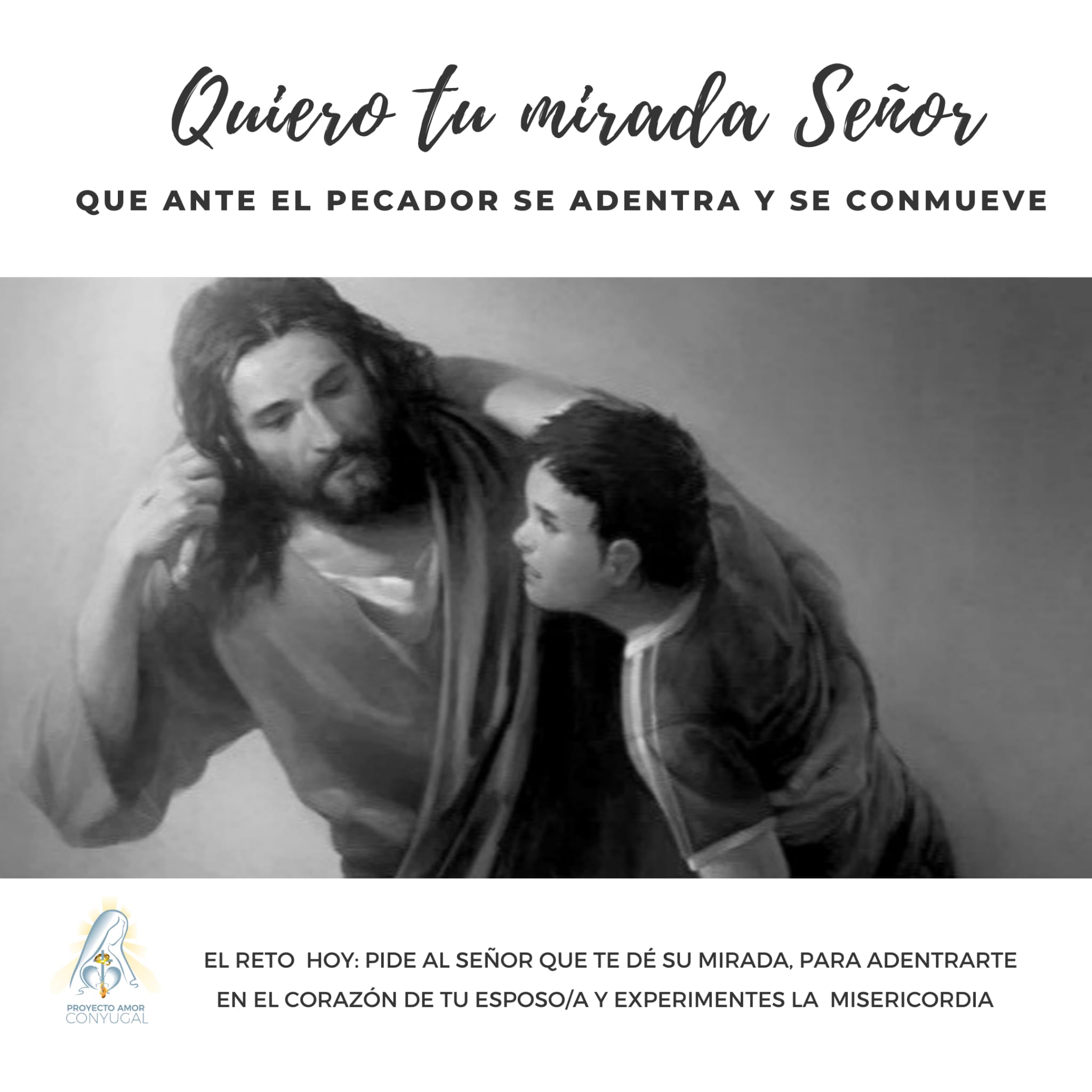 La mirada misericordiosa es esa que no se para en lo superficial, en lo sensible ni en las sensaciones, sino que profundiza y es capaz de adentrarse en el corazón del miserable. Ve la grandeza del pecador, ve su sufrimiento, su ceguera, y se conmueve. Sí, la mirada misericordiosa conmueve las entrañas del que mira así. Contemplo a Jesús, que me mira conmovido por mi pecado y, me convierte radicalmente.