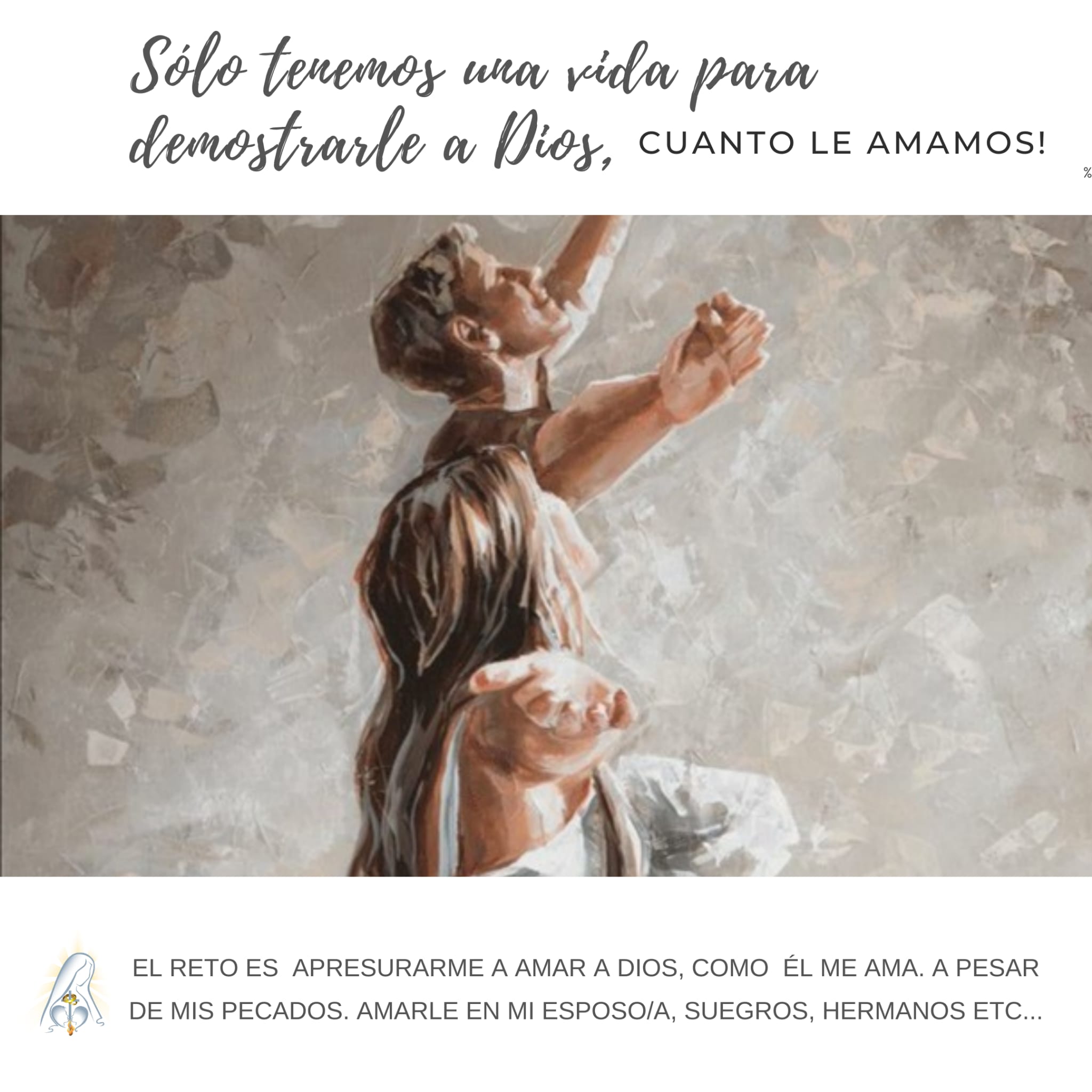 Dios nos ha dado la dignidad de ser cristianos, parte del Cuerpo místico de Cristo, que es la Iglesia. Y tenemos que comportarnos como Él para responder a nuestra vocación de esposos cristianos. Amamos a Dios en la medida en la que nos esforzamos por amarnos entre nosotros. Y yo, Señor, te entrego mi vida. Amén.