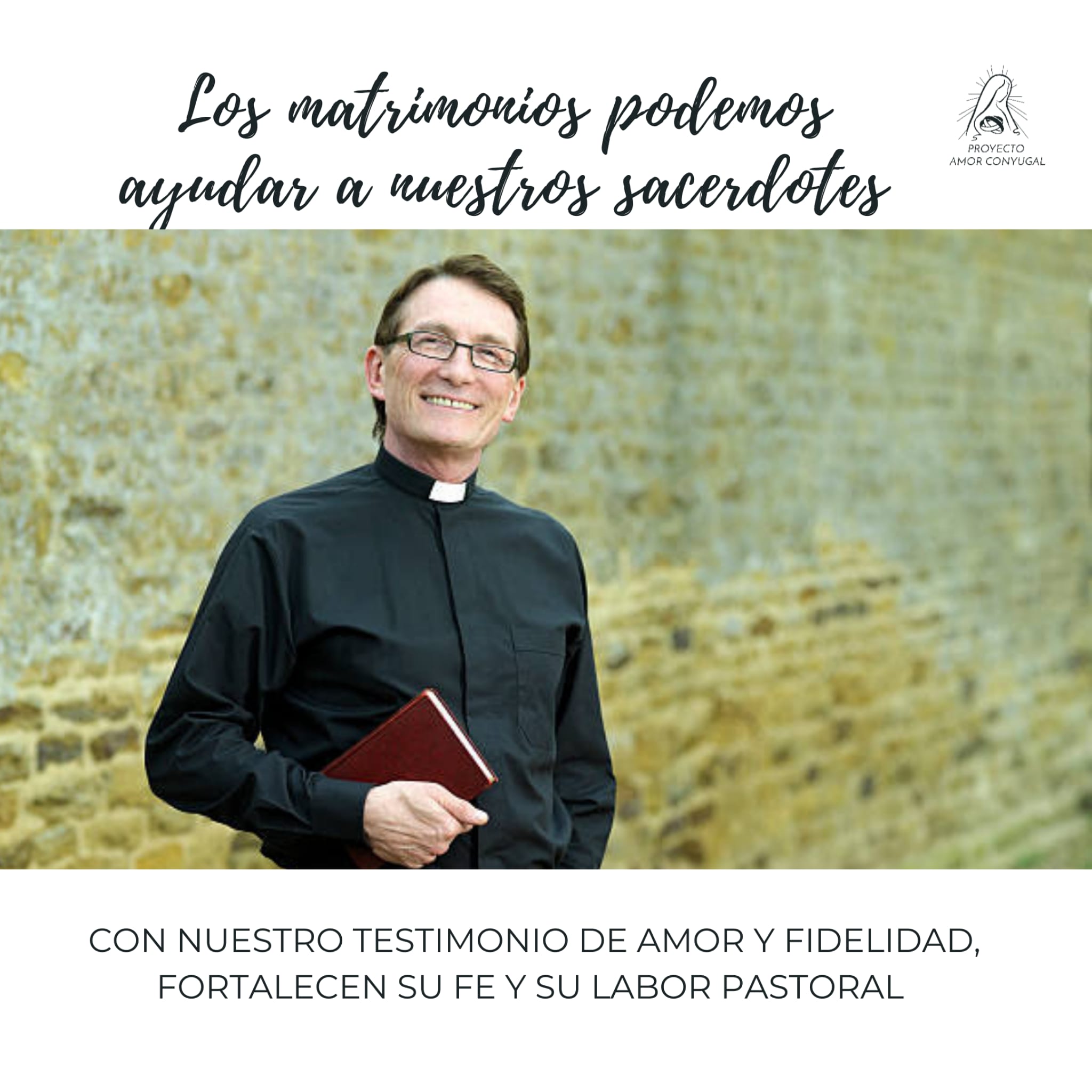 Para nosotros es importante rodearnos de buenos sacerdotes. Nos ayudan mucho con su ministerio. Pero no debemos olvidar que también nosotros les ayudamos a ellos, principalmente con nuestro testimonio de amor y fidelidad. Hacerles partícipes de la obra de Dios en nosotros les ayuda a fortalecer su fe, les ayuda y les anima en su labor pastoral porque también ellos dedican su vida principalmente a las familias, ya que somos una mayoría muy amplia de la feligresía. Sí, los sacerdotes necesitan de nuestro testimonio para fortalecer su vocación. El Señor hoy nos insta a que compartamos con ellos lo que Él va haciendo en nuestro matrimonio.