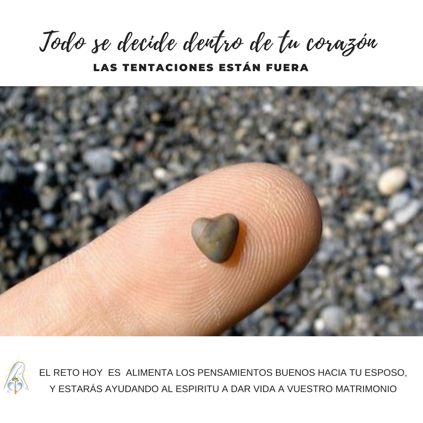 Andrea: Veo algo que me incomoda o que no me gusta, me dejo llevar por ese sentimiento negativo, y ya empieza mi cabeza a pensar: Si cambiara mi esposo, mi matrimonio iría mejor, o si cambiaran mis hijos o mis circunstancias económicas o laborales o familiares en sentido amplio… seríamos más felices. Desaparece la presencia del bien en mi corazón y aparece la del mal.